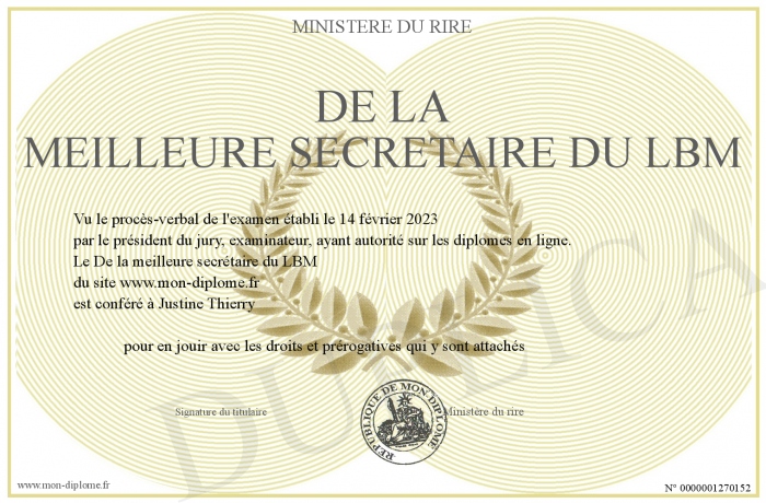 Envoyez par email votre De la meilleure secrétaire du LBM personalisé