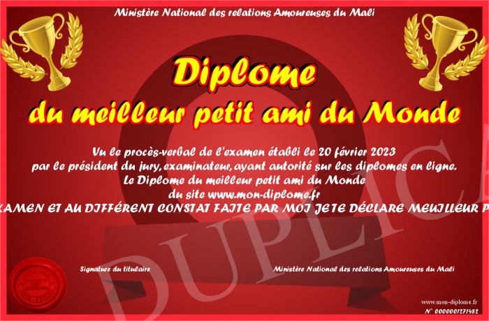 Envoyez par email votre Diplôme du meilleur petit ami du Monde personalisé