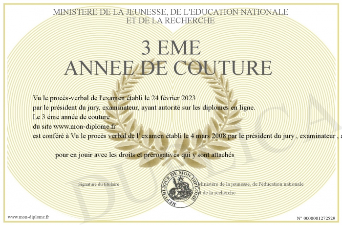 Envoyez par email votre 3 éme année de couture personalisé
