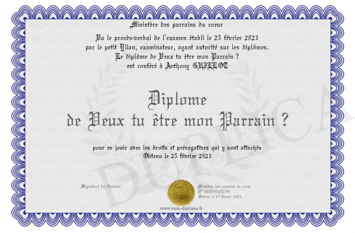Envoyez par email votre Diplôme de Veux tu être mon Parrain ? personalisé