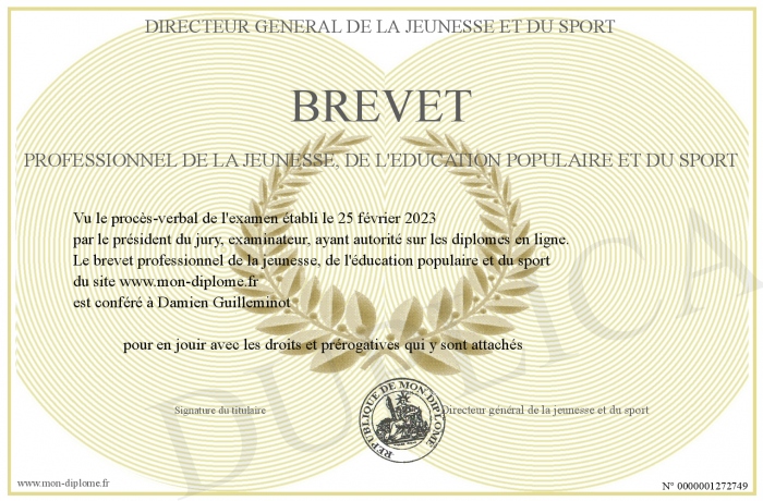 Envoyez par email votre brevet professionnel de la jeunesse, de l'éducation populaire et du sport personalisé