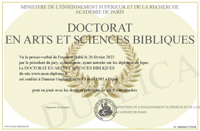 Envoyez par email votre DOCTORAT EN ARTS ET SCIENCES BIBLIQUES personalisé