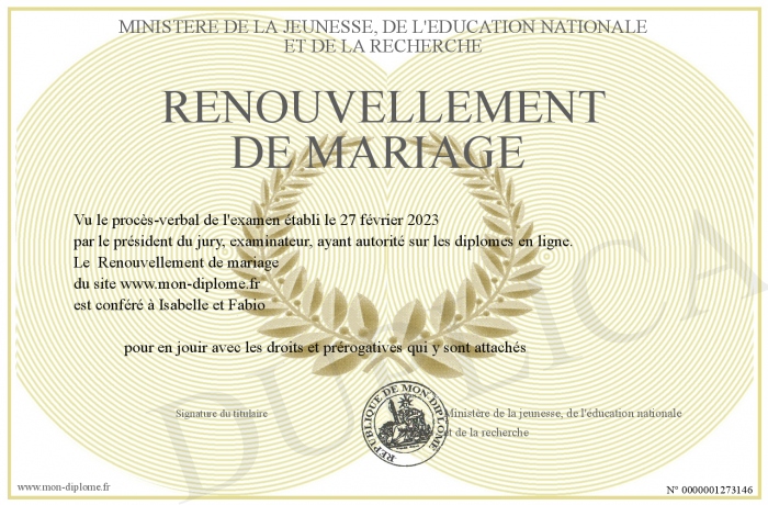 Envoyez par email votre Renouvellement de mariage personalisé