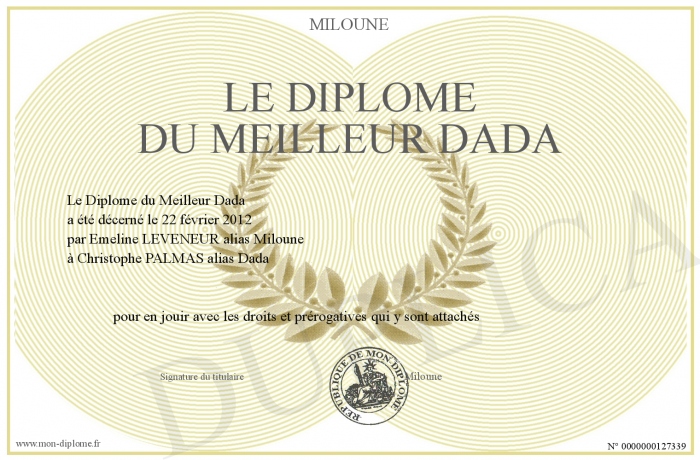 Envoyez par email votre Le Diplôme du Meilleur Dada personalisé
