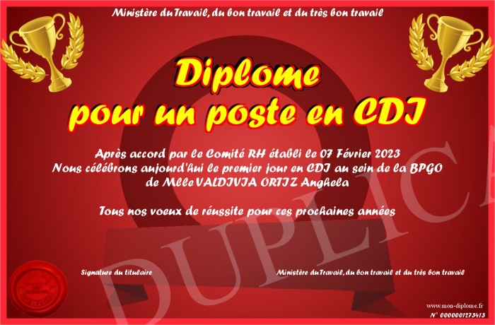 Envoyez par email votre Diplôme pour un poste en CDI personalisé