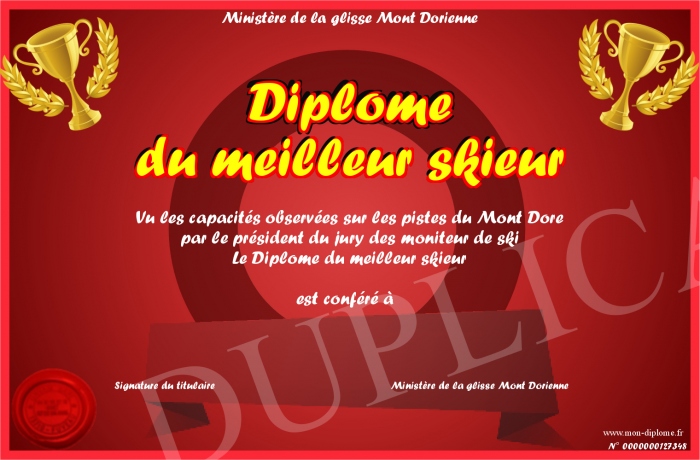 Envoyez par email votre Diplôme du meilleur skieur personalisé
