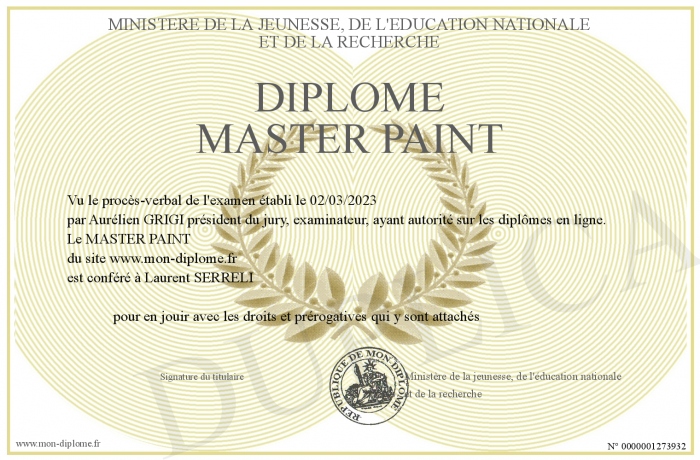 Envoyez par email votre Diplôme MASTER PAINT personalisé