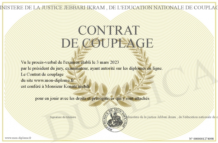 Envoyez par email votre Contrat de couplage personalisé