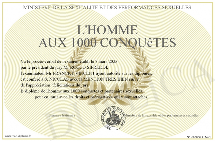 Envoyez par email votre L'homme aux 1000 conquêtes personalisé