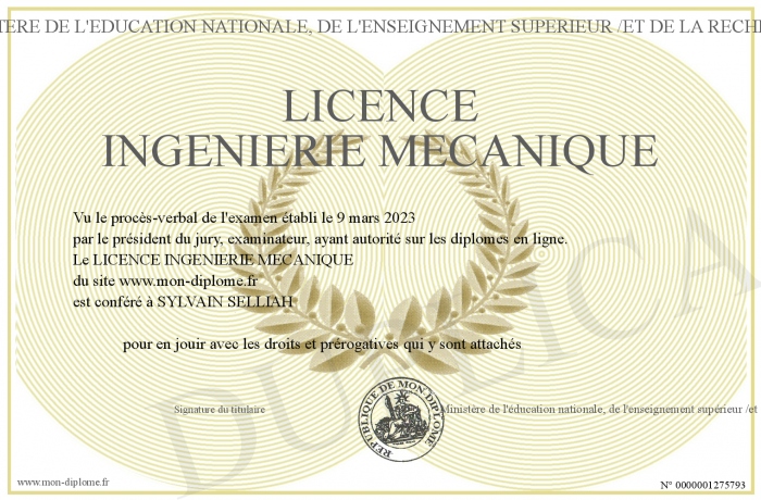 Envoyez par email votre LICENCE INGENIERIE MECANIQUE personalisé