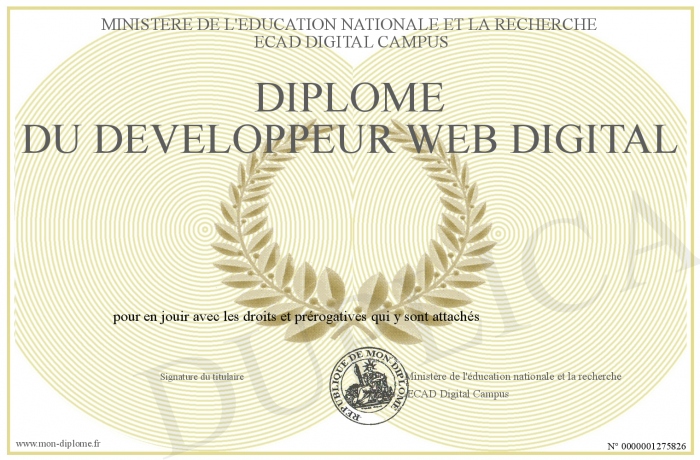 Envoyez par email votre Diplôme du Développeur Web Digital personalisé
