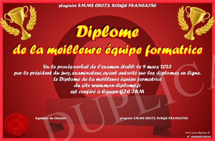 Envoyez par email votre Diplôme de la meilleure équipe formatrice personalisé