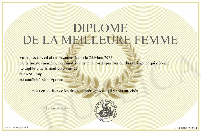 Envoyez par email votre Diplôme de la Meilleure femme personalisé