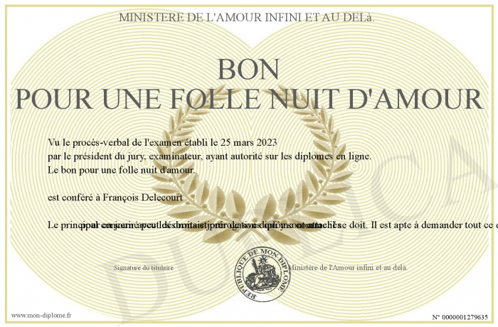 Envoyez par email votre BON POUR UNE FOLLE NUIT D'AMOUR personalisé