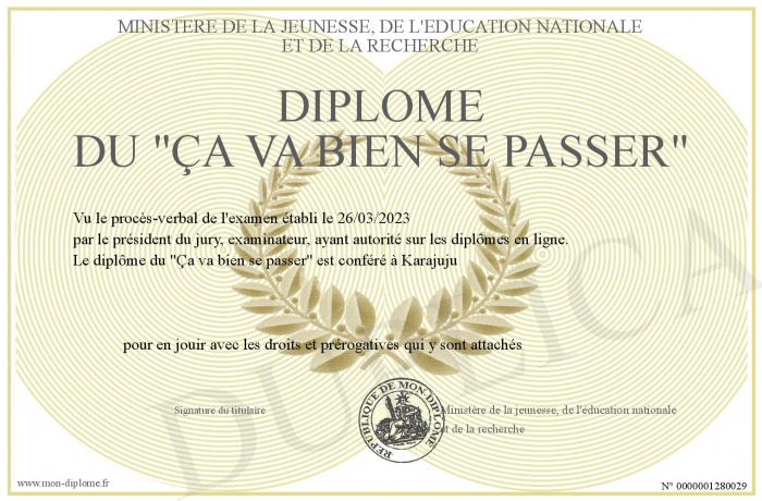 • Diplôme du -Ça va bien se passer-
