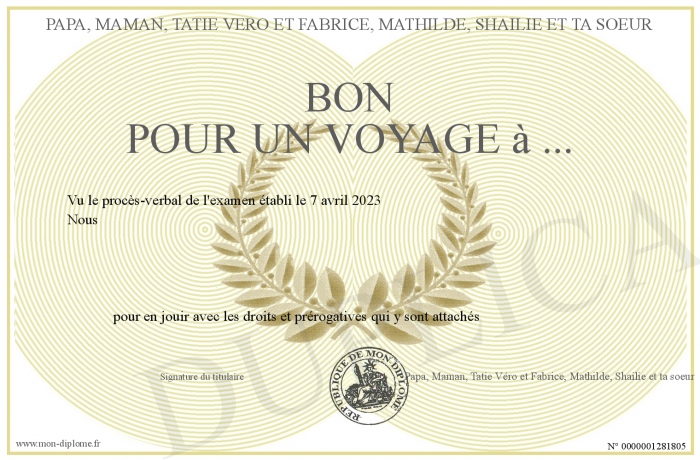 Envoyez par email votre Bon pour un voyage à ... personalisé