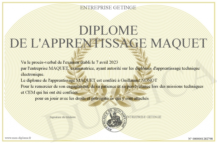 Envoyez par email votre diplôme de l'apprentissage MAQUET personalisé