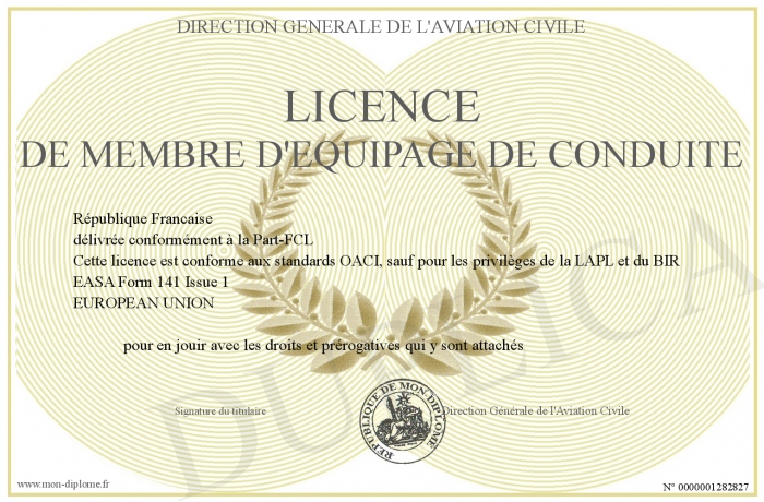 Envoyez par email votre Licence De Membre d'Equipage De Conduite personalisé