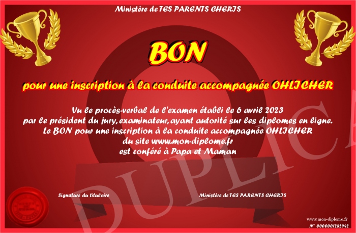 Envoyez par email votre BON pour une inscription à la conduite accompagnée OHLICHER personalisé