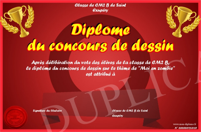 Envoyez par email votre Diplôme du concours de dessin personalisé