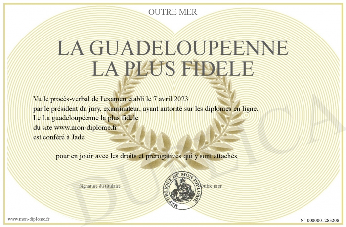 Envoyez par email votre La guadeloupéenne la plus fidèle personalisé