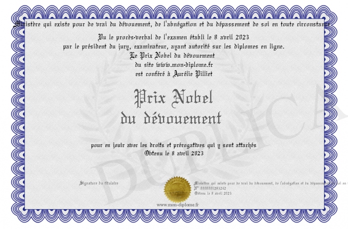 Envoyez par email votre Prix Nobel du dévouement personalisé