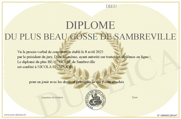 Envoyez par email votre diplômé du plus BEAU GOSSE de Sambreville personalisé