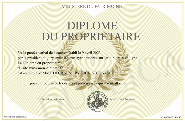 Envoyez par email votre Diplôme du propriétaire personalisé