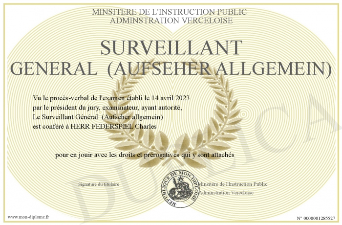 Envoyez par email votre Surveillant Général (Aufseher allgemein) personalisé