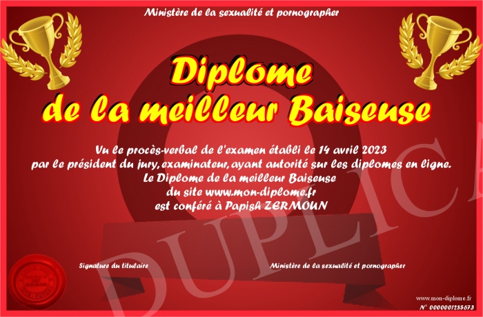 Envoyez par email votre Diplôme de la meilleur Baiseuse personalisé