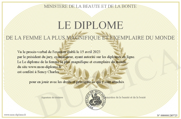 Envoyez par email votre Le diplôme de la femme la plus magnifique et exemplaire du monde personalisé