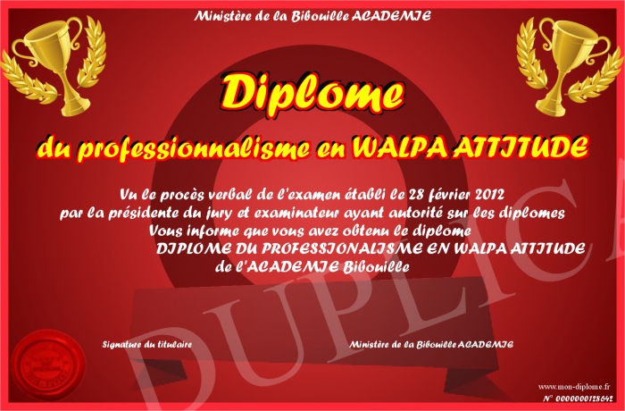 Envoyez par email votre Diplôme du professionnalisme en WALPA ATTITUDE personalisé
