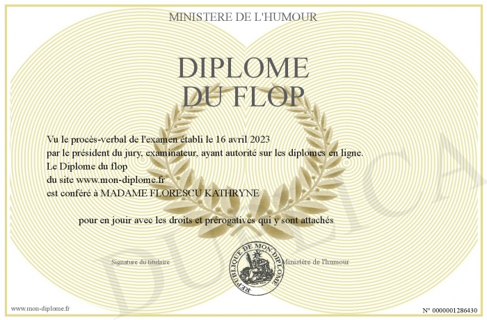 Envoyez par email votre Diplôme du flop personalisé