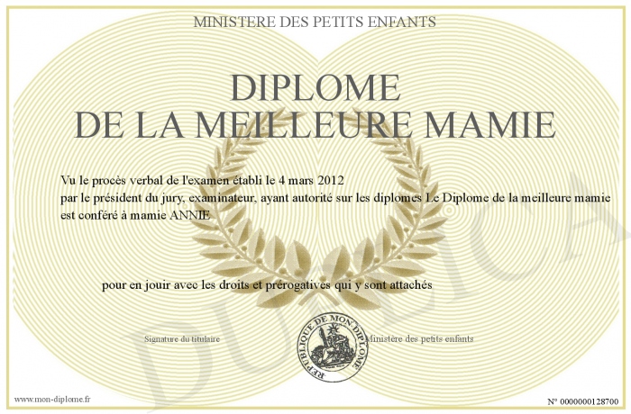Envoyez par email votre Diplôme de la meilleure mamie personalisé