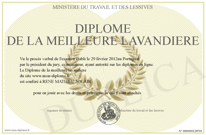 Envoyez par email votre Diplôme de la meilleure lavandiere personalisé