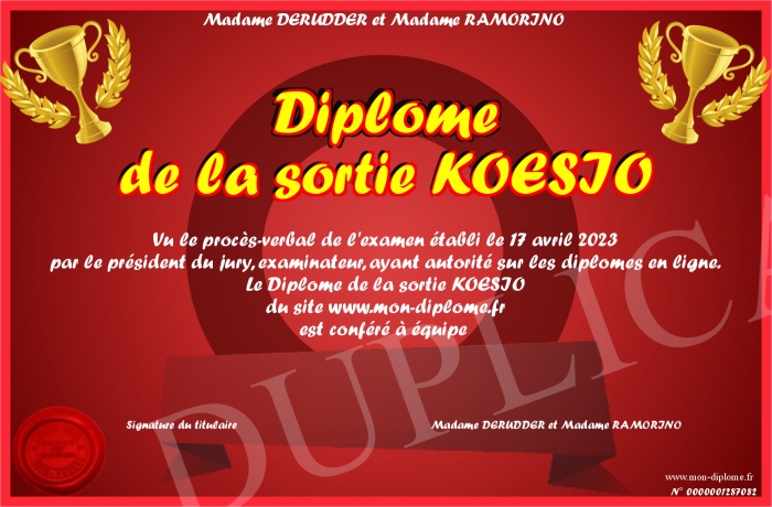 Envoyez par email votre Diplôme de la sortie KOESIO personalisé