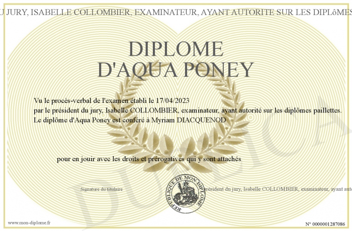 envoyé par le président du jury, Isabelle COLLOMBIER, examinateur, ayant autorité sur les diplômes paillettes. !