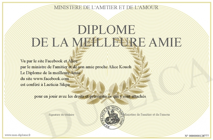 Envoyez par email votre Diplome de la meilleure Amie personalisé