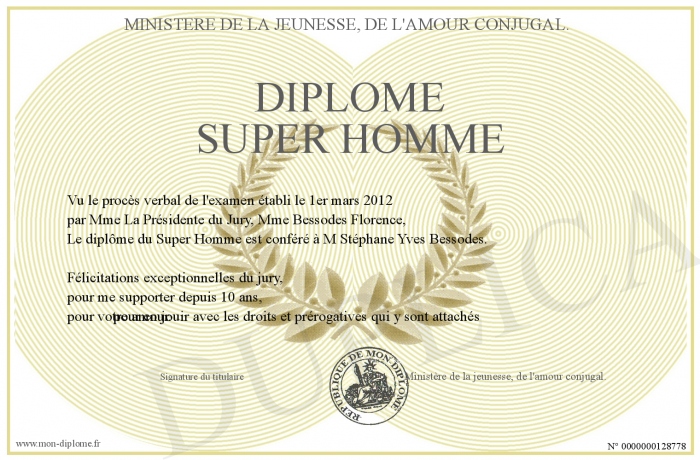 Envoyez par email votre Diplôme SUPER Homme personalisé