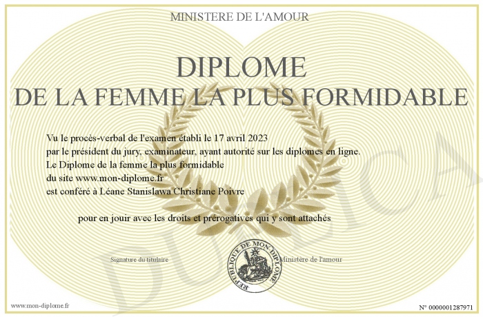 Envoyez par email votre Diplôme de la femme la plus formidable personalisé