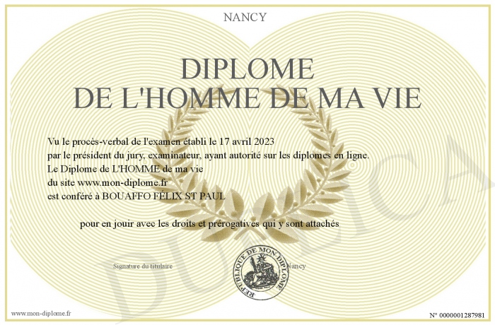 Envoyez par email votre Diplôme de L'HOMME de ma vie personalisé