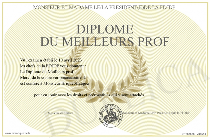 Envoyez par email votre Diplôme du Meilleurs prof personalisé