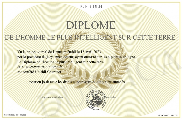 Envoyez par email votre Diplôme de l'homme le plus intelligent sur cette terre personalisé