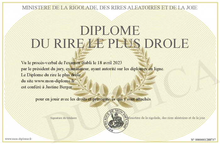 Envoyez par email votre Diplôme du rire le plus drôle personalisé
