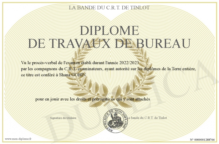 Envoyez par email votre Diplôme de Travaux de Bureau personalisé