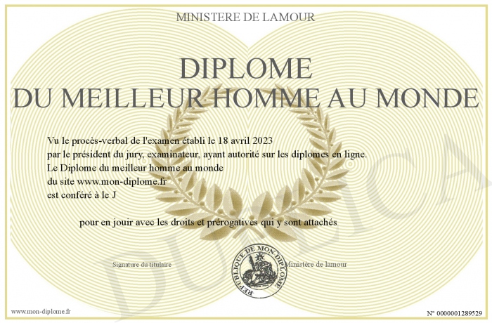 Envoyez par email votre Diplôme du meilleur homme au monde personalisé