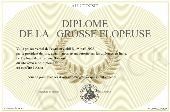 Envoyez par email votre Diplôme de la grosse flopeuse personalisé