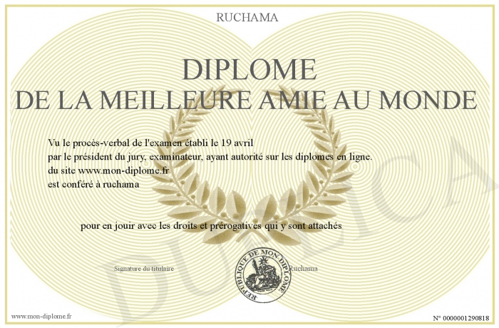 Envoyez par email votre Diplôme de la meilleure amie au monde personalisé