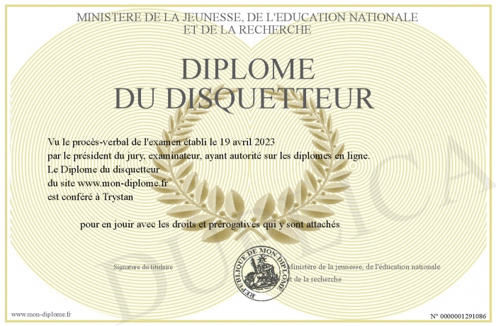 Envoyez par email votre Diplôme du disquetteur personalisé