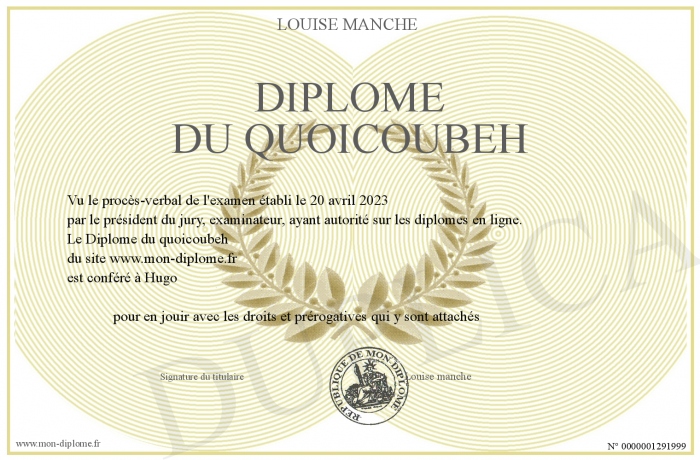 Envoyez par email votre Diplôme du quoicoubeh personalisé